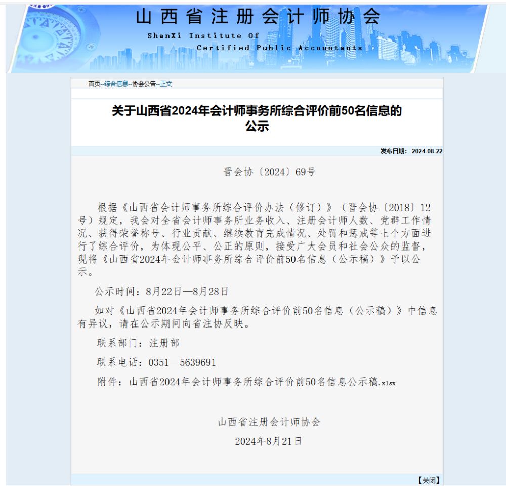 祝賀山西陳明會計(jì)師事務(wù)所有限公司獲山西省事務(wù)所綜合排名28名